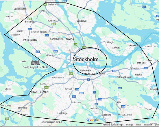 Vi i levererar ej röda dagar, afton eller högtider. Utöver din varukorg tillkommer en budavgift på 125 kr. Se områdeskartan för respektive stad innan du lägger din beställning- om du är osäker kontakta oss.