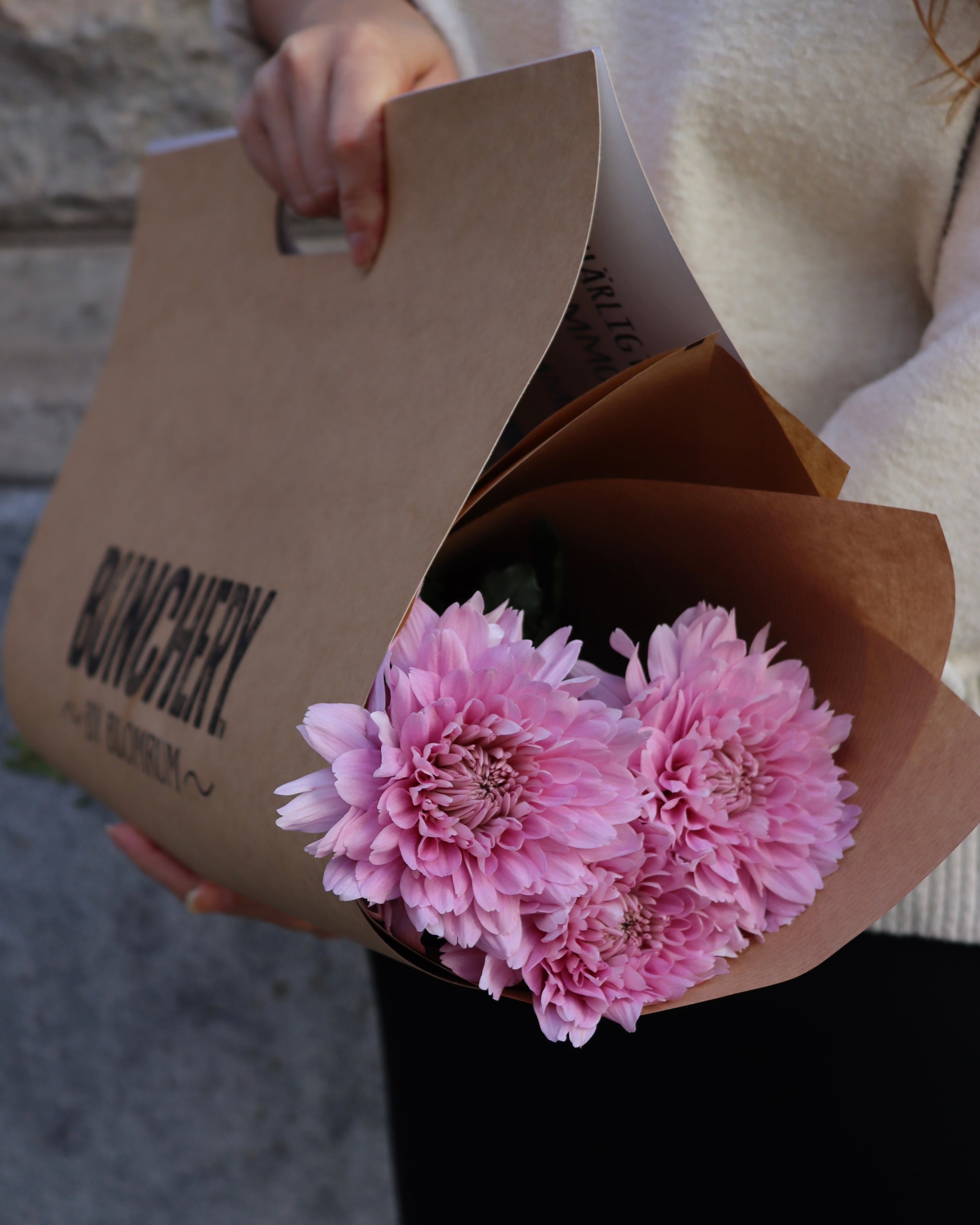 Bollkrysantemum är en hållbar och ståtlig blomma som passar fint med många andra blommor i ditt arrangemang. Välj en bunt Eucalyptus att matcha med så har du ett fint och hållbart arrangemang i din vas.