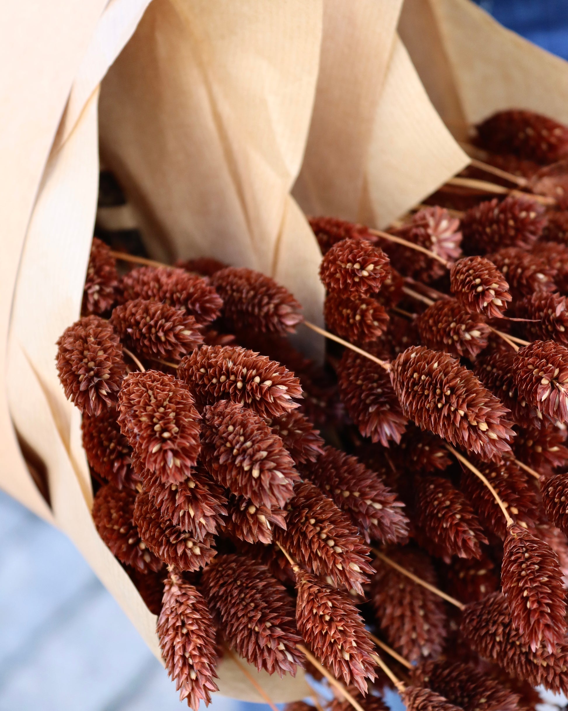 Denna phalaris kommer i en brun färgnyans och håller flera månader utan att ha vatten i vasen. En riktigt hållbar bunt med andra ord. Denna bunt är perfekt för att piffa i höst. För att öka hållbarheten på dina torkade snittblommor tänk på att inte placera dom i direkt solljus.
