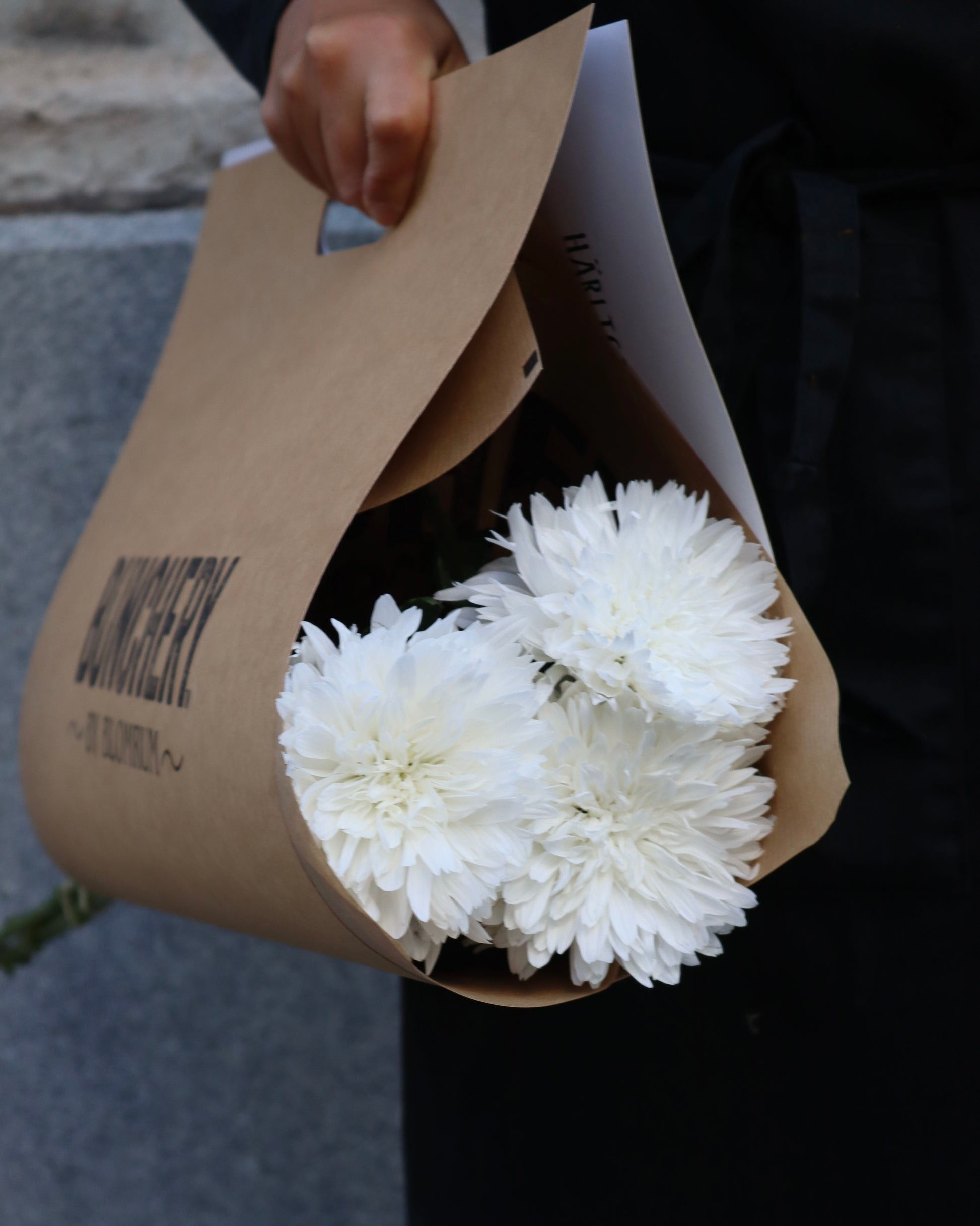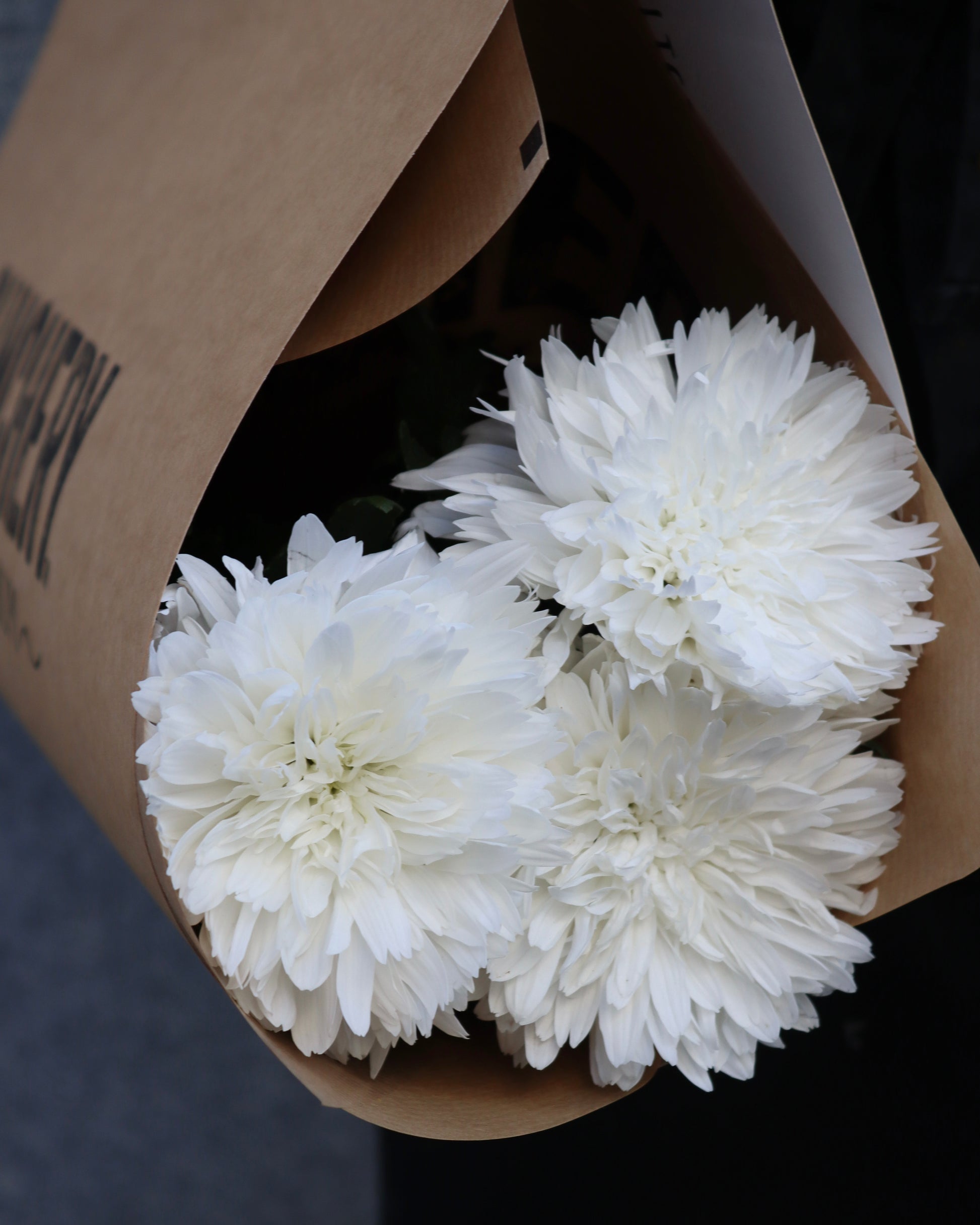 Bollkrysantemum är en hållbar och ståtlig blomma som passar fint med många andra blommor i ditt arrangemang. Välj en bunt Eucalyptus att matcha med så har du ett fint och hållbart arrangemang i din vas.
