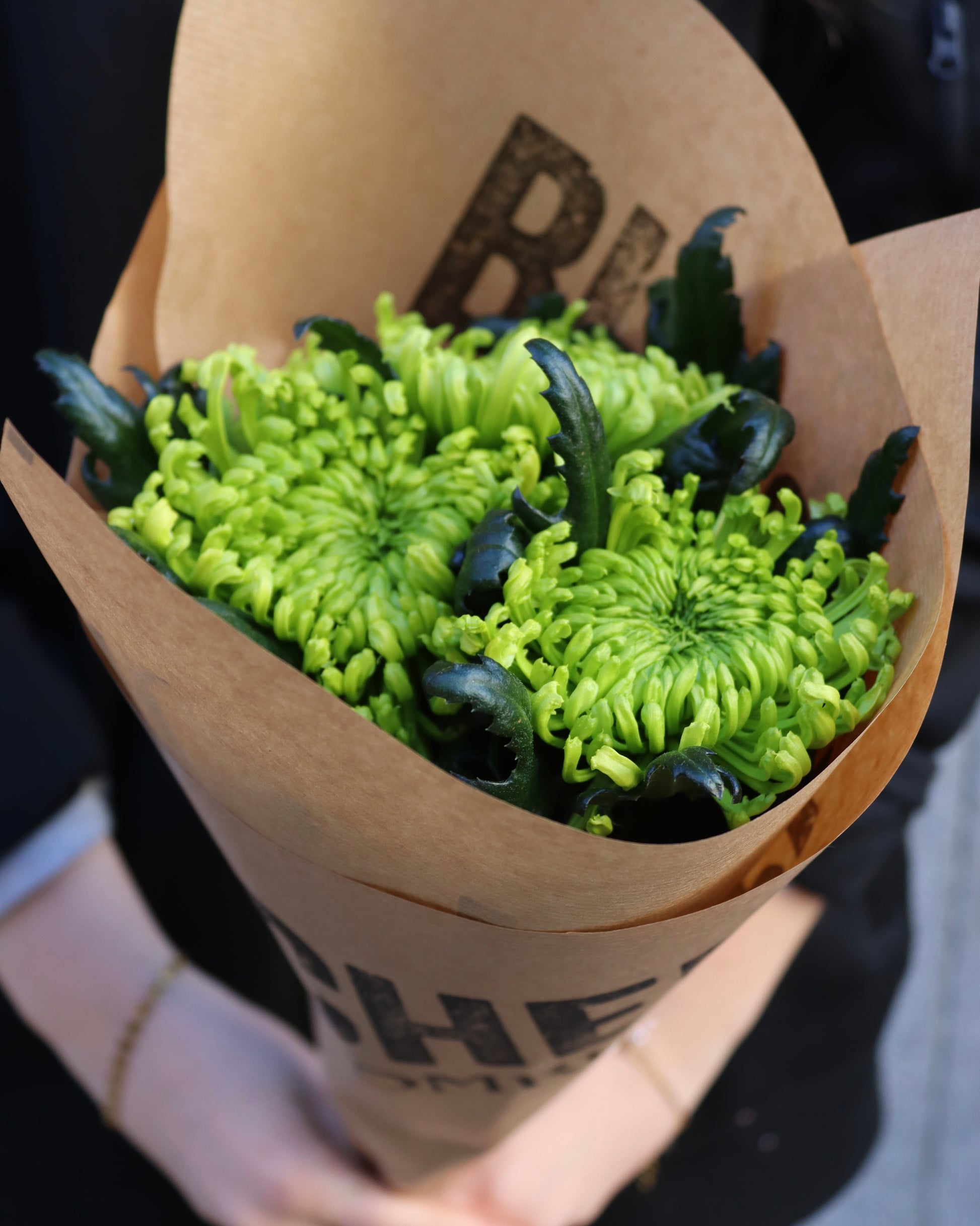 Bollkrysantemum är en hållbar och ståtlig blomma som passar fint med många andra blommor i ditt arrangemang. Välj en bunt eucalyptus att matcha med så har du ett fint och hållbart arrangemang i din vas.