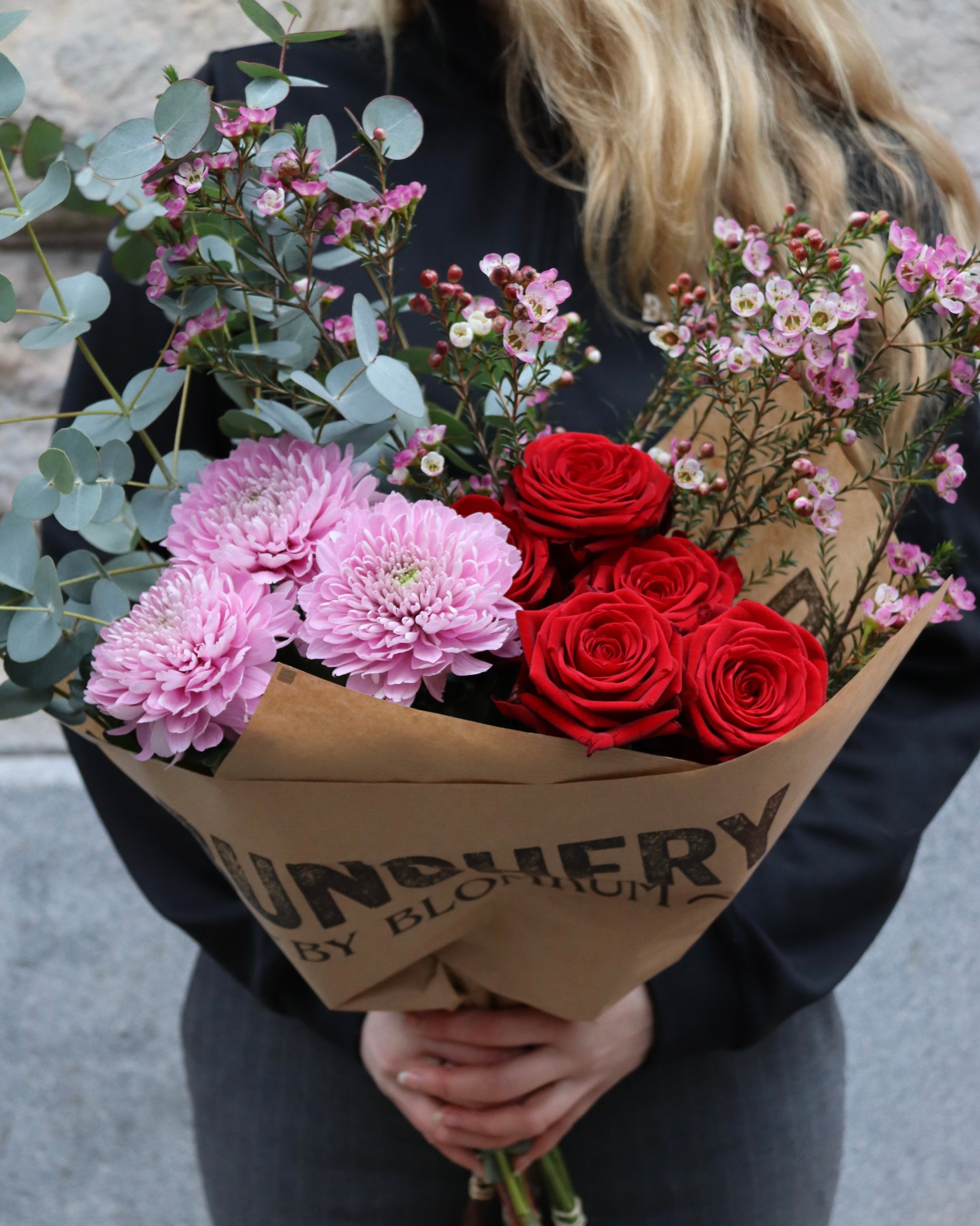 Buncherys Val- Alla hjärtans mix! Lägg din beställning redan idag för att inte glömma fira kärleken, uppmärksamma dig själv eller någon annan lite extra. Vi väljer dagens finaste buntar i röda och rosa toner tillsammans med säsongens finaste grönt. Passa på att uppmärksamma din partner, syster, bror, mormor eller kollega lite extra mycket?