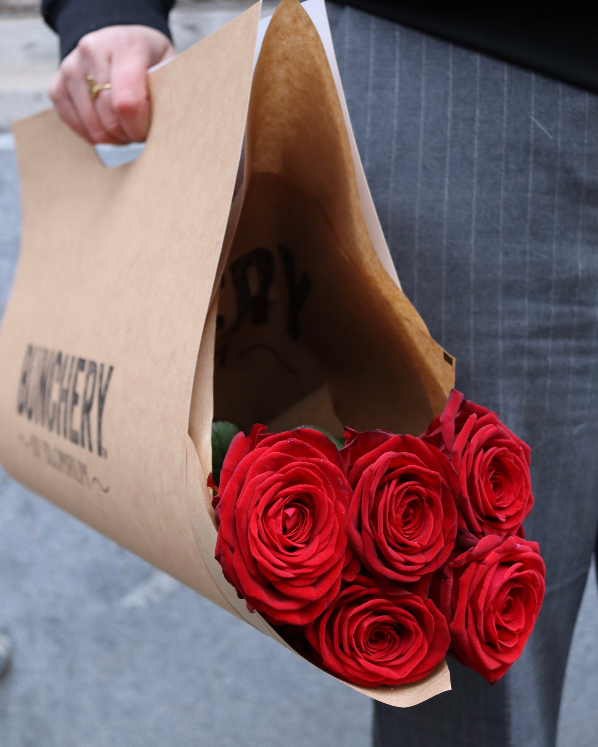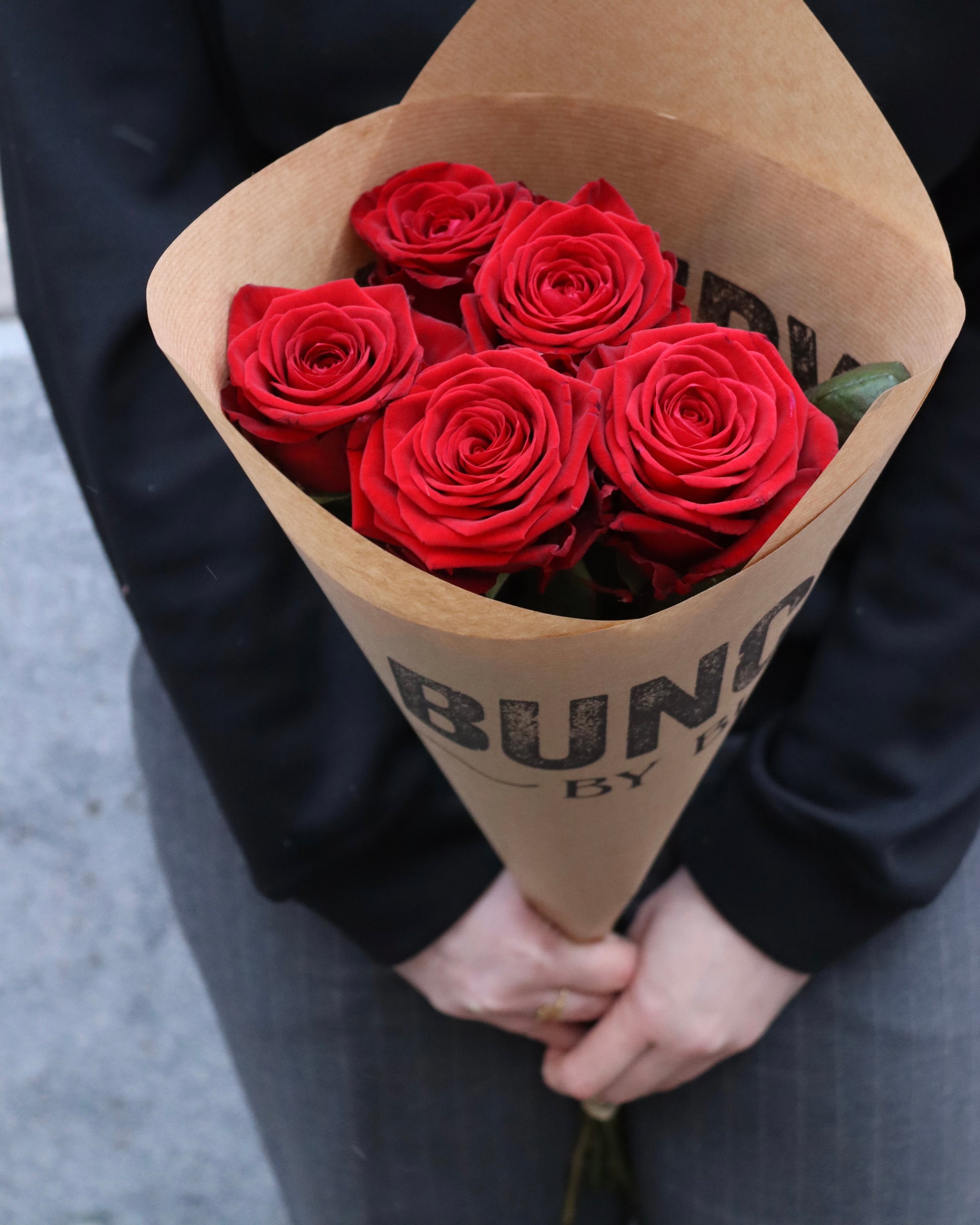 Den klassiska röda rosen, passar fint till de flesta snittblommor och särskilt med en bunt grönt.